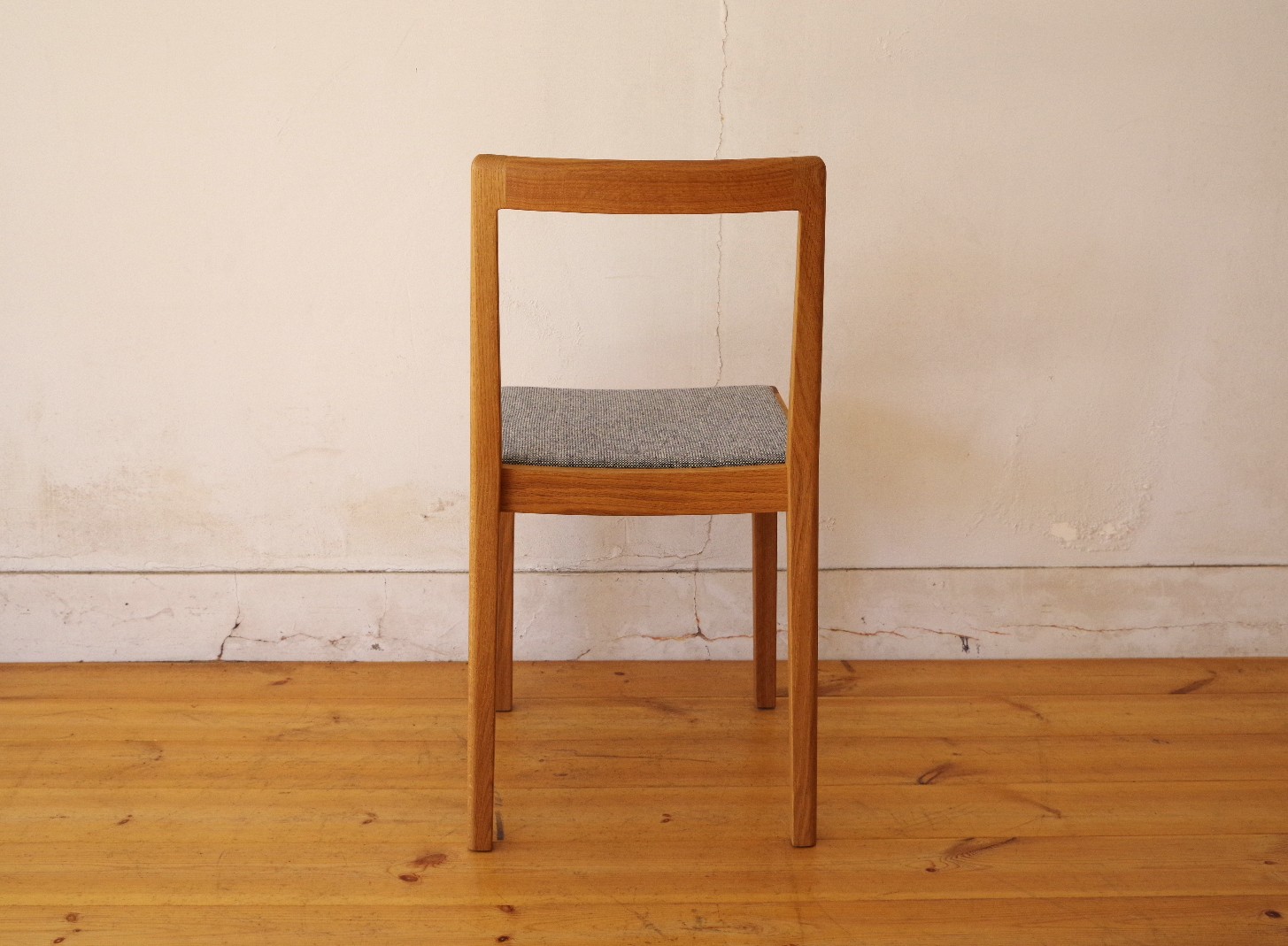 最小限のパーツで構成されたシンプルを極めた椅子。一見すると直線的ですが、すべての角をR加工することでミニマムな中にも豊かな表情を出しています。小ぶりなサイズなので、家事室やリビングデスクの椅子など広さが取れない場所でも置けそうです。座面は硬めで立ち上がりもしやすい仕様です。